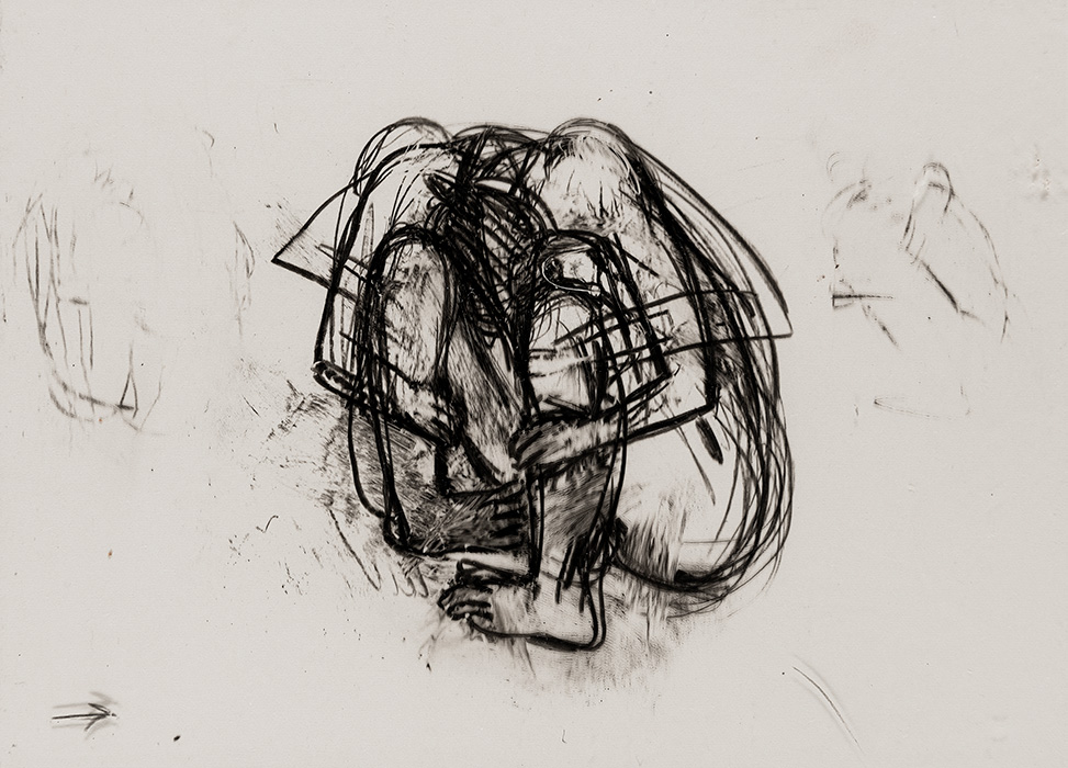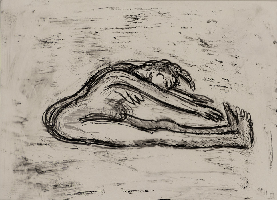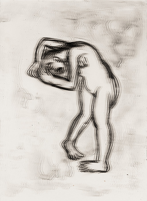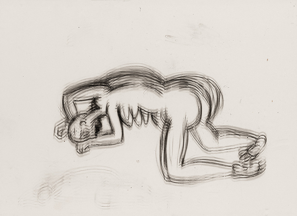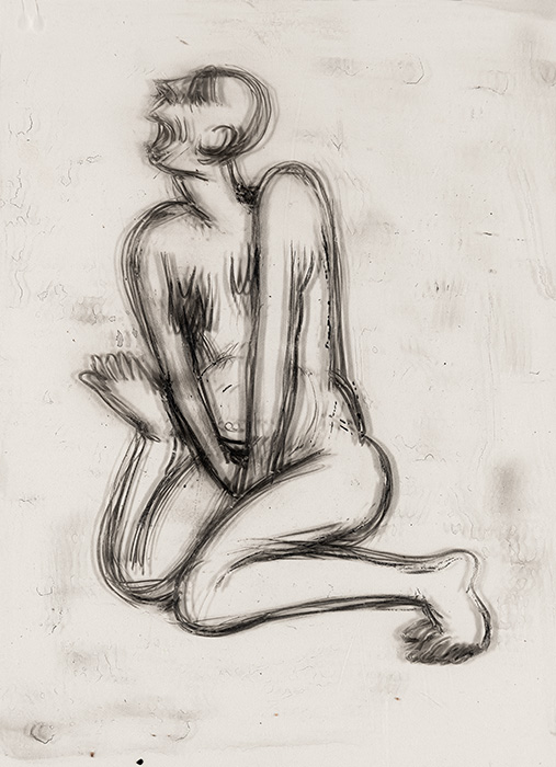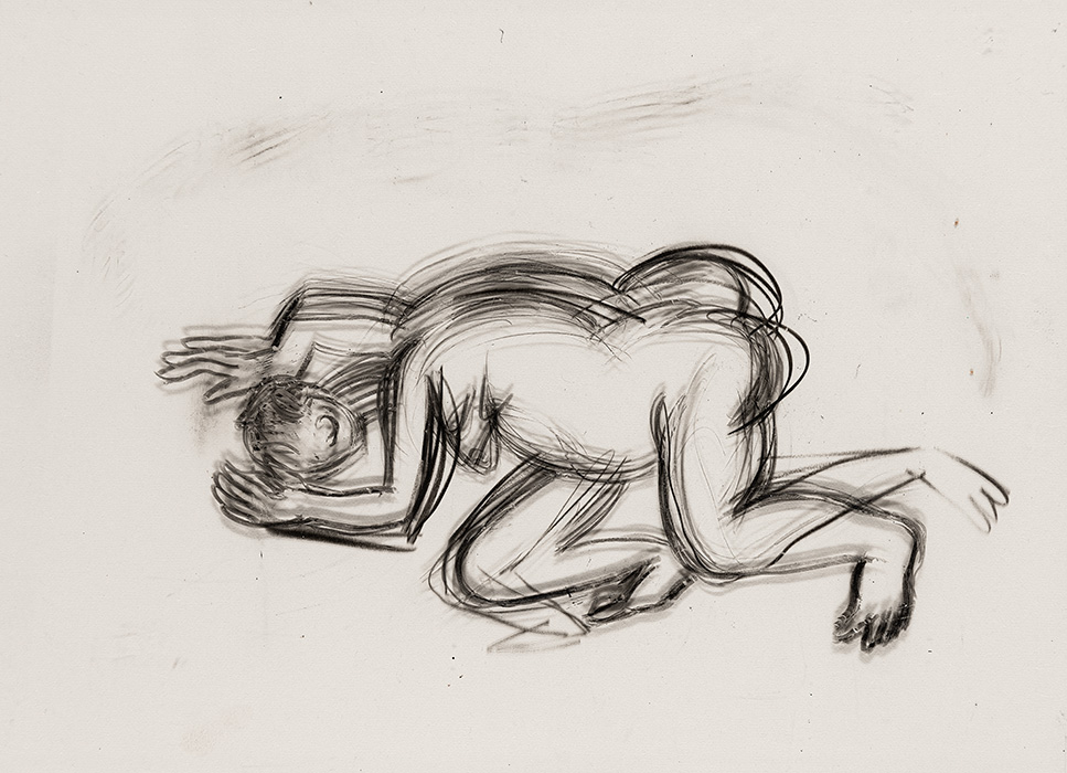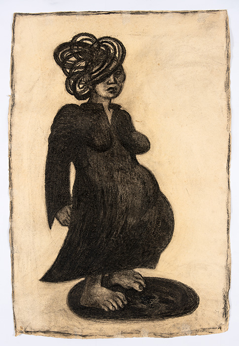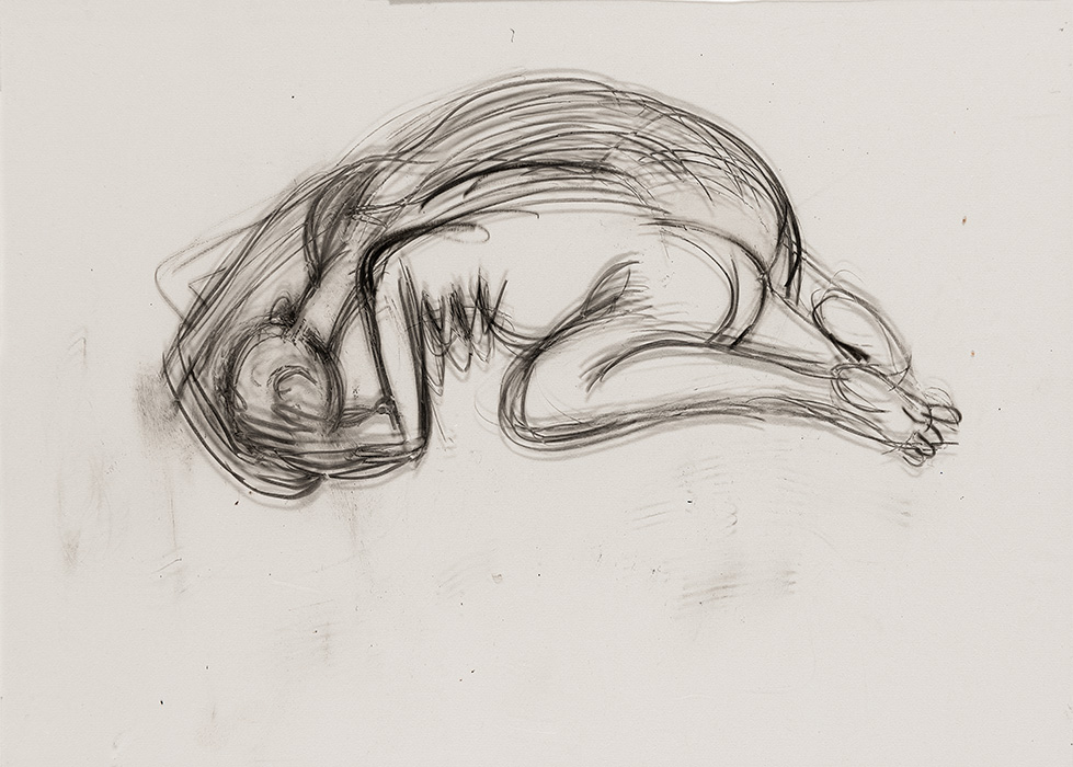 In a series of dense charcoal drawings done on large handmade papers, the artist seems to turn inwards seeking the center of gravity in a turbulent and labyrinthine mass of forms. There are moments when the bodies seem about to topple over, only to be saved by their instinctive sense of balance. The bodies are either struggling to get out of, or trying to remain within the shadows cast by their own selves. These powerful works highlight the ambivalent relation between safety and freedom, between the need to remain within one’s safe zone and the need to step out, between sanctuary and prison. The series powerfully articulates the struggle with the self that is the ultimate hurdle to emancipation. They strongly exemplify the introspective and assertive qualities in Shakuntala’s work mentioned above. In their strange inward silence, they suggest that only woman herself can be her own saviour. The decision is ultimately hers alone.